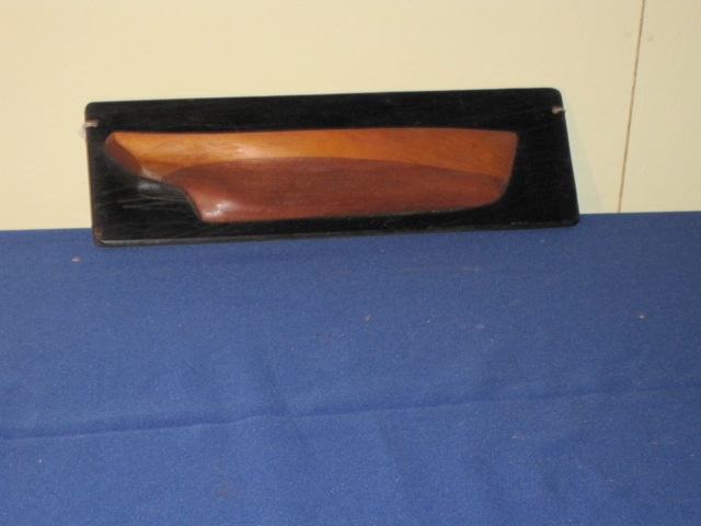 This is a model of a Muscongus Bay Sloop. The model was made by William Poland, a boat builder from Bremen, Maine. See the lable on the reverse. Model was most likely built in the late 30's early 40"s, and is nicely done. The board is original to the model and is in good condition.