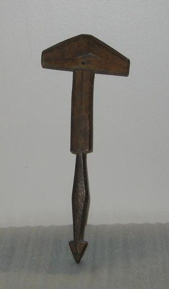 We have only an idea of what this thing is, but it is surely unique. One idea is that it is a fid, but it doesn’t really look like one, but it could have been used to open up the "lay" of large rope. Another idea is that it was used for caulking - ie hammering in the caulking on a ship. Someone thought it might have been used for fishing – taking the hook out of large fish. It also could be made by a sailor as a hammer for his child. Anyway, "it is what it is" and I love it. If anyone has an idea please let me know.